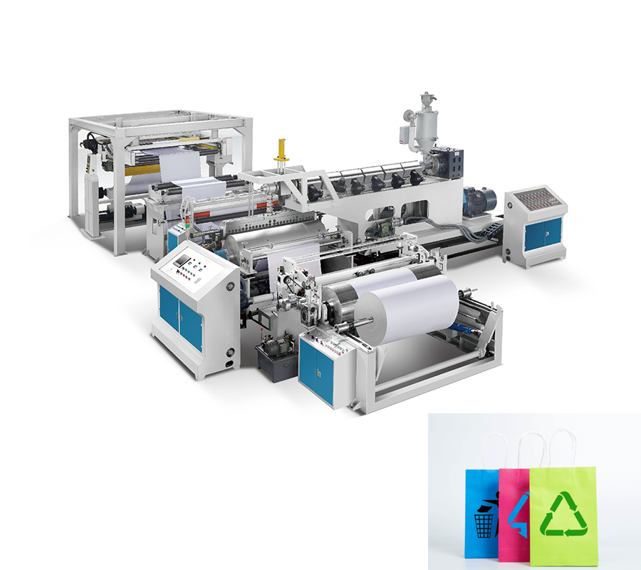 高速單面淋膜機(jī)以LDPE、LLDPE、PP、EVA、EAA等涂覆級(jí)淋膜樹(shù)脂為原料,可對(duì)紙張,無(wú)紡布,編織袋等產(chǎn)品進(jìn)行單面淋膜。
