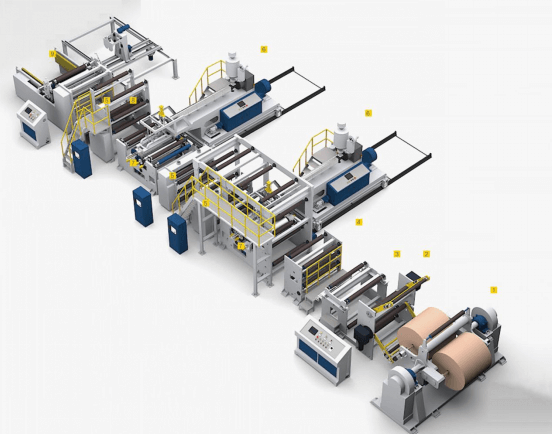 如果單面淋膜后返回再淋另一邊,會(huì)不可避免地導(dǎo)致張力發(fā)生變化,造成紙張的浪費(fèi)(紙張是不可回收的,必須在生產(chǎn)過程中嚴(yán)格控制)。而這臺(tái)設(shè)備可以一次性實(shí)現(xiàn)雙面淋膜,避免損耗的同時(shí)提高生產(chǎn)效率。